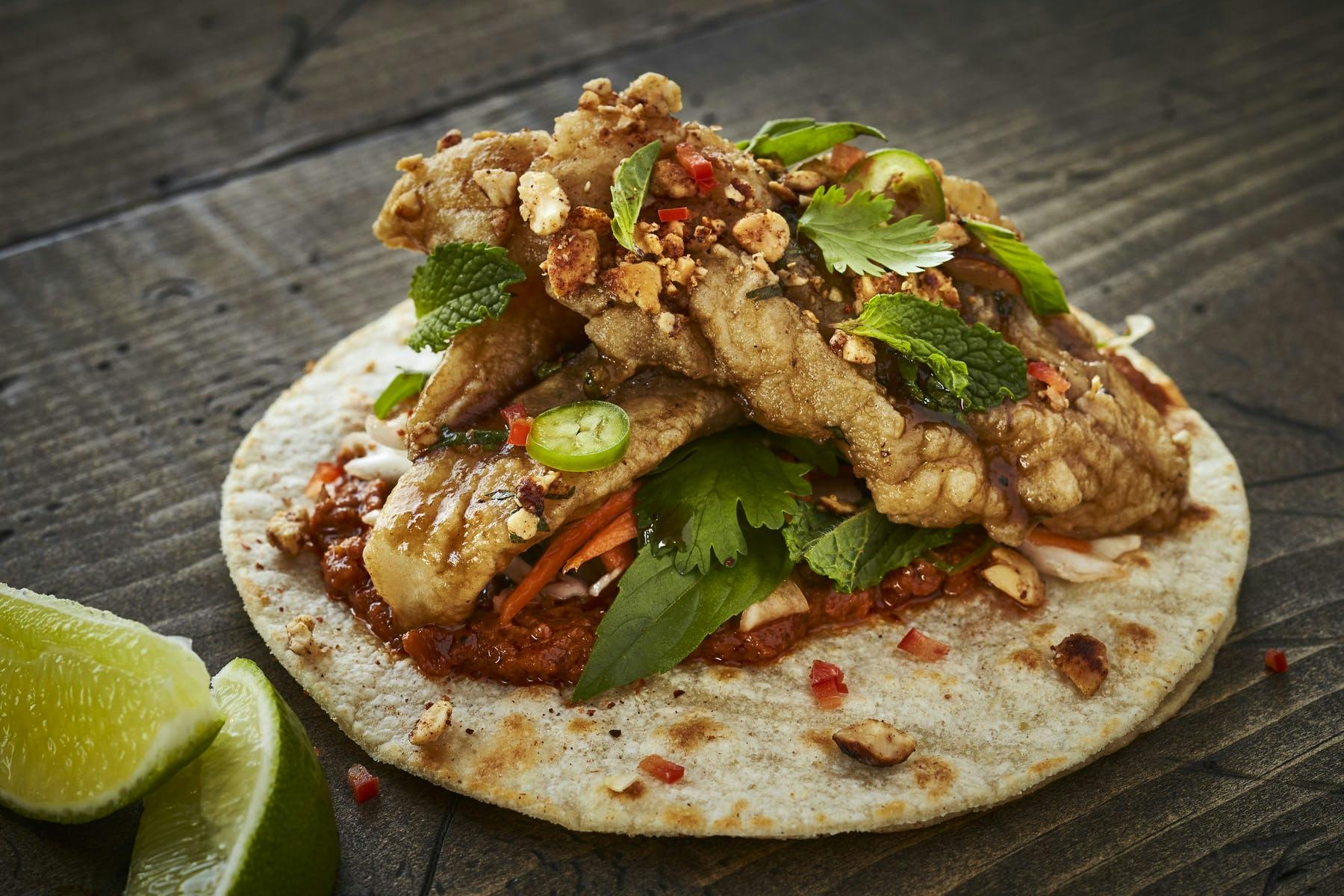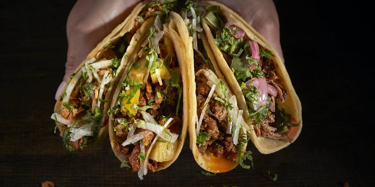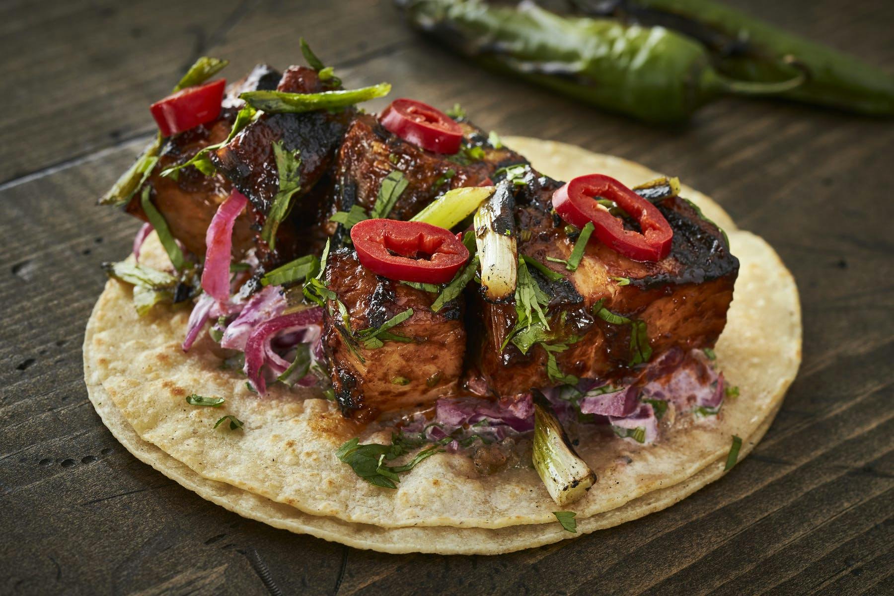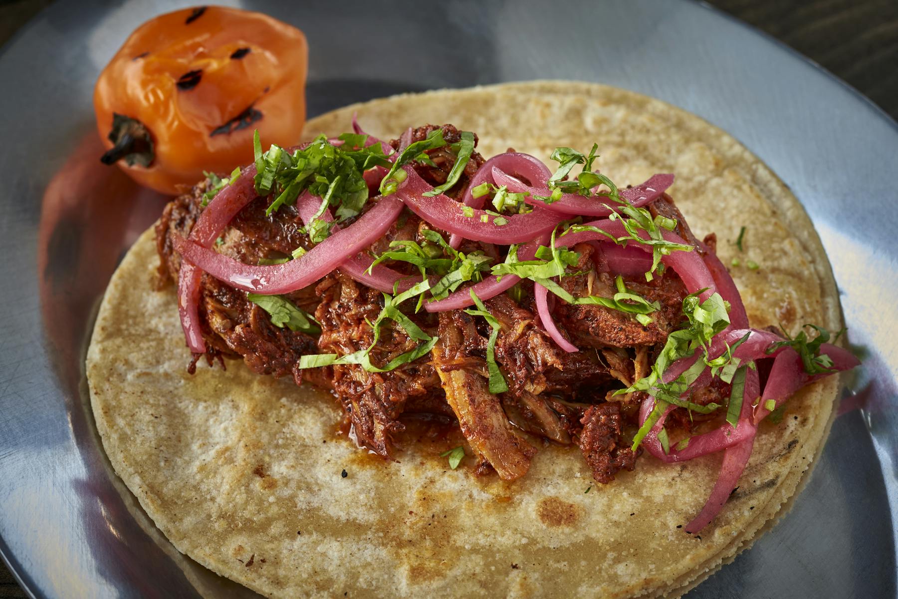 Our Tacos most are served on corn tortillas the ones that are not are marked. Shredded Pork Carnitas Morita BBQ Sauce Candied Jalapeno Onion 4. 100 Food was good.